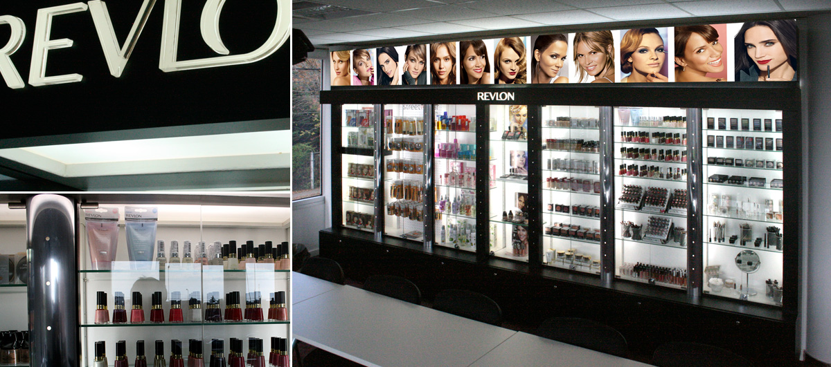 Revlon: Showroom Ministand. Mueble exhibidor para línea de cosmética para sector perfumería en distintos locales de Falabella. En este caso se hizo un desarrollo especial para renovar la exhibición de productos con un sistema de alta flexibilidad y mejoramiento de la distribución.